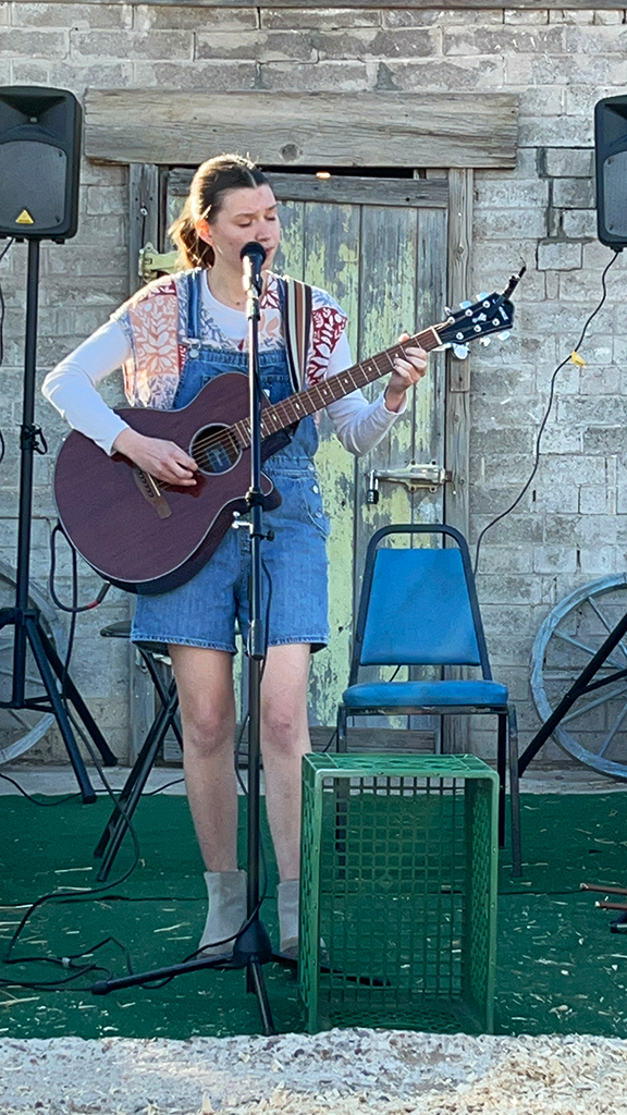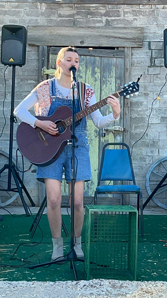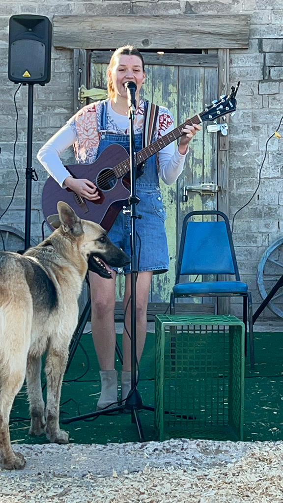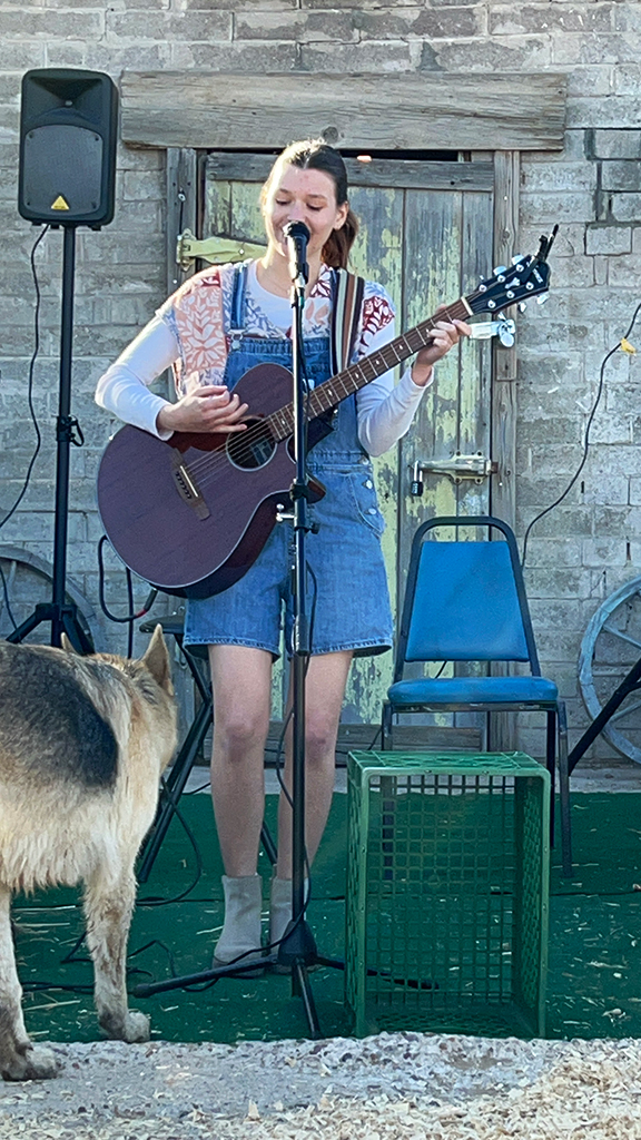 Zoe Nichols performed a solo set at the Behind the Barn stage at the Laveen Folk Music Festival. She garnered much attention including a four-legged fan that wanted to join in on the act.