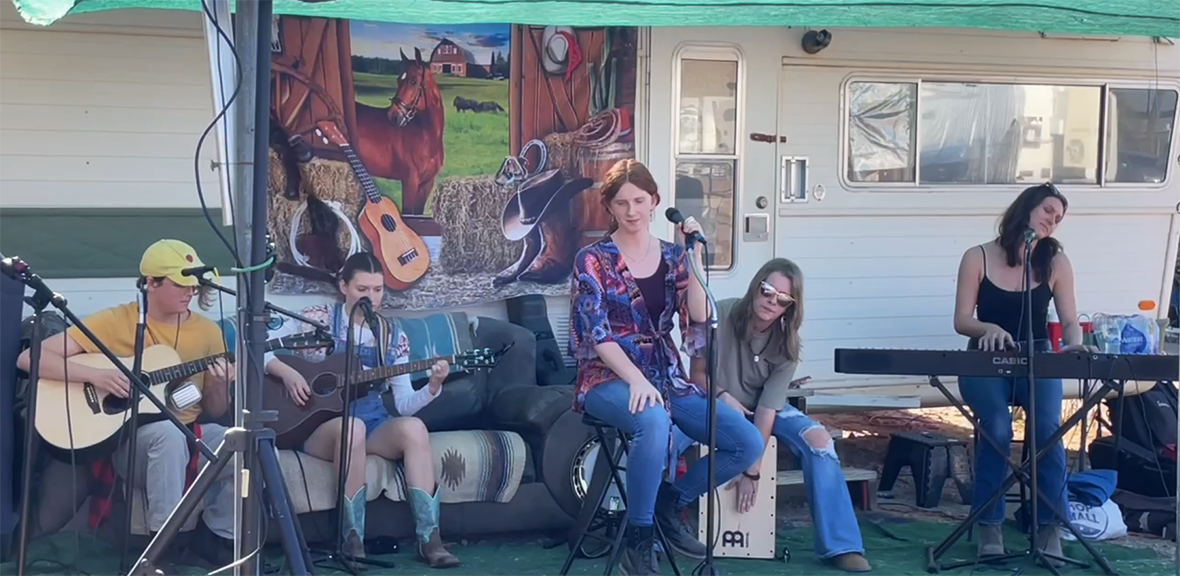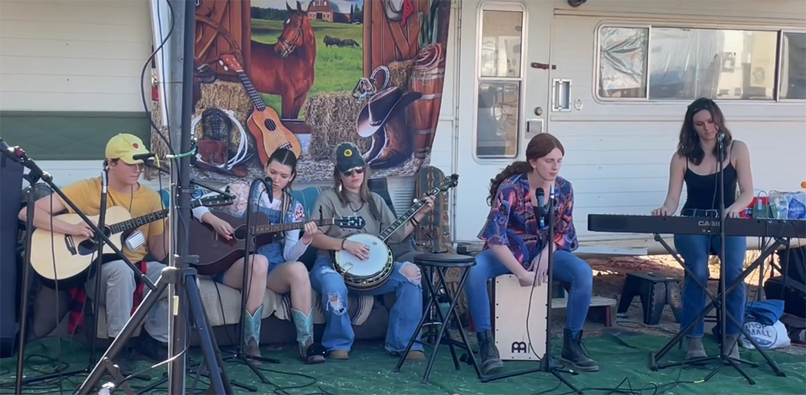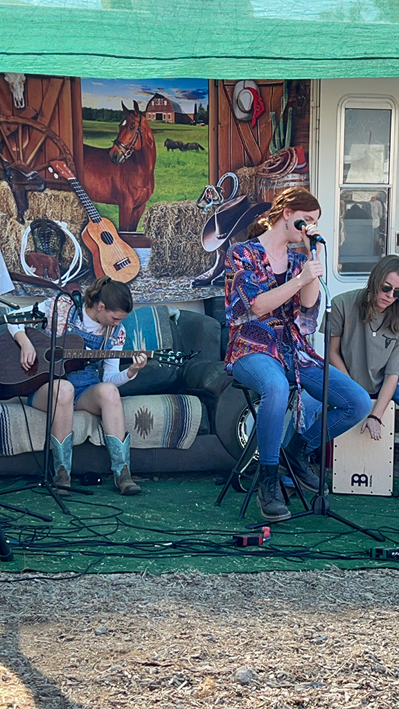 Later, Zoe's band Porch Rock, played a set at the Horse Stage featuring Riley Blocker, Zoe Nichols, Brea Stephens, Sky Prikey and Hannah Warcola. Multiple band members stuck around to participate in the annual impromptu band scramble competition. Zoe and Sky's band won second place!